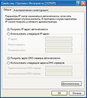 - В окне конфигурации протокола TCP/IP