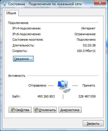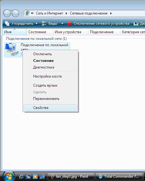 В окне "Сетевые подключения" щёлкните по "подключению по локальной сети" правой кнопкой мыши и, в появившемся меню, выберете пункт "Cостояние"