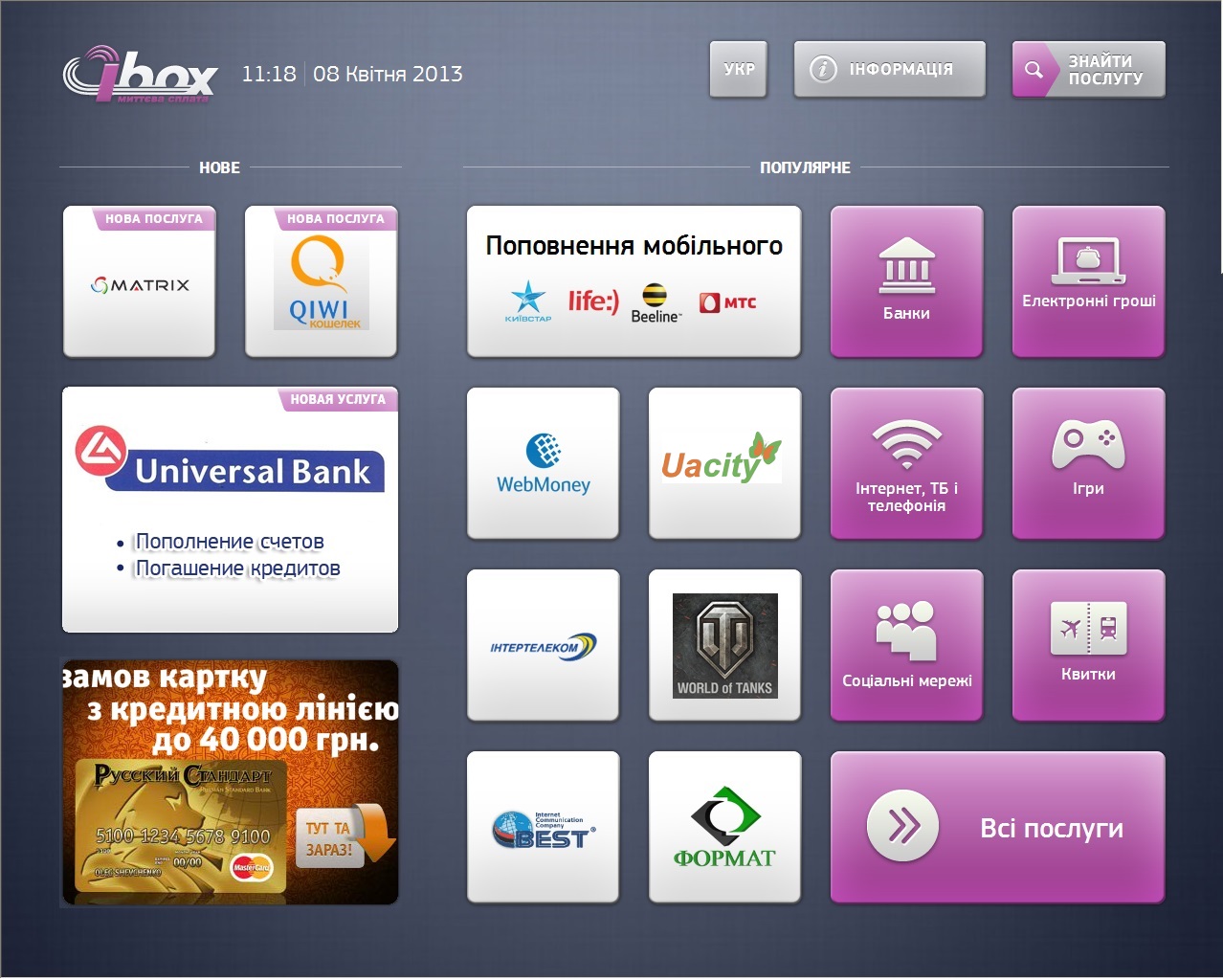 Выберете ближайший автомат моментальной оплаты с логотипом IBOX